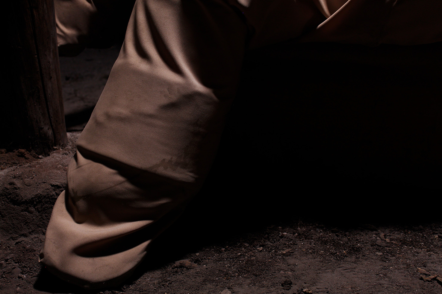 found objects, personal collection of clothes, textile, ceramic, silicone, Nyx skin foundation 'light neutral', Chanel natural finish pressed powder '30 Naturel translucent 2'