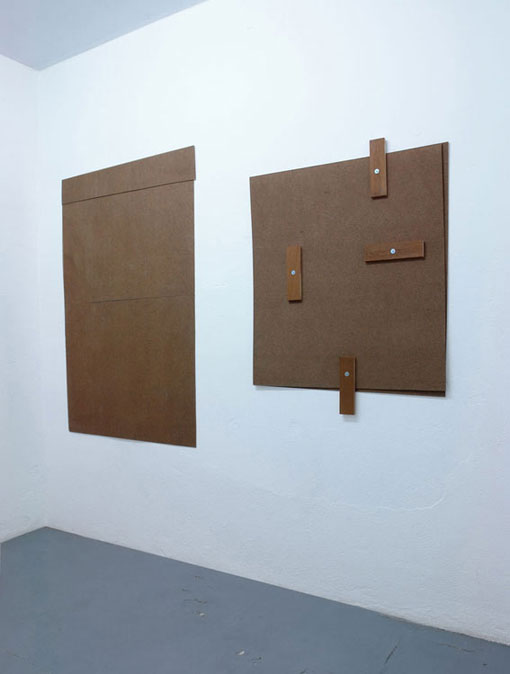Pressspan, Stahlnägel, Kiefernleimholz mit Eichenfurnier, Schrauben, Unterlegscheiben