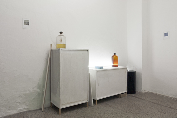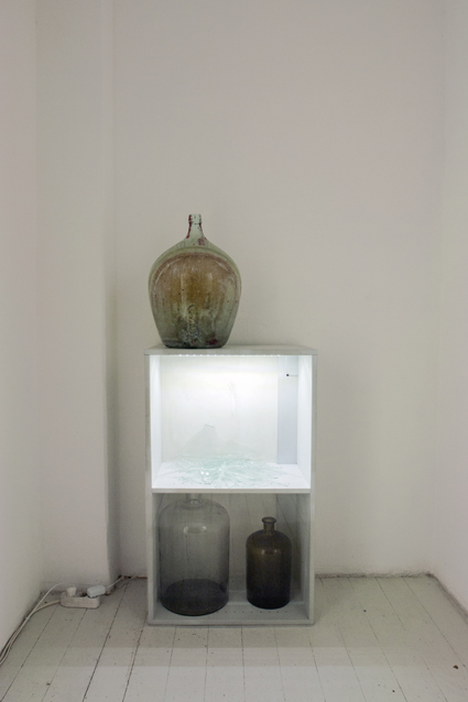Holz, Glas, Plexiglas, Licht, Flaschen